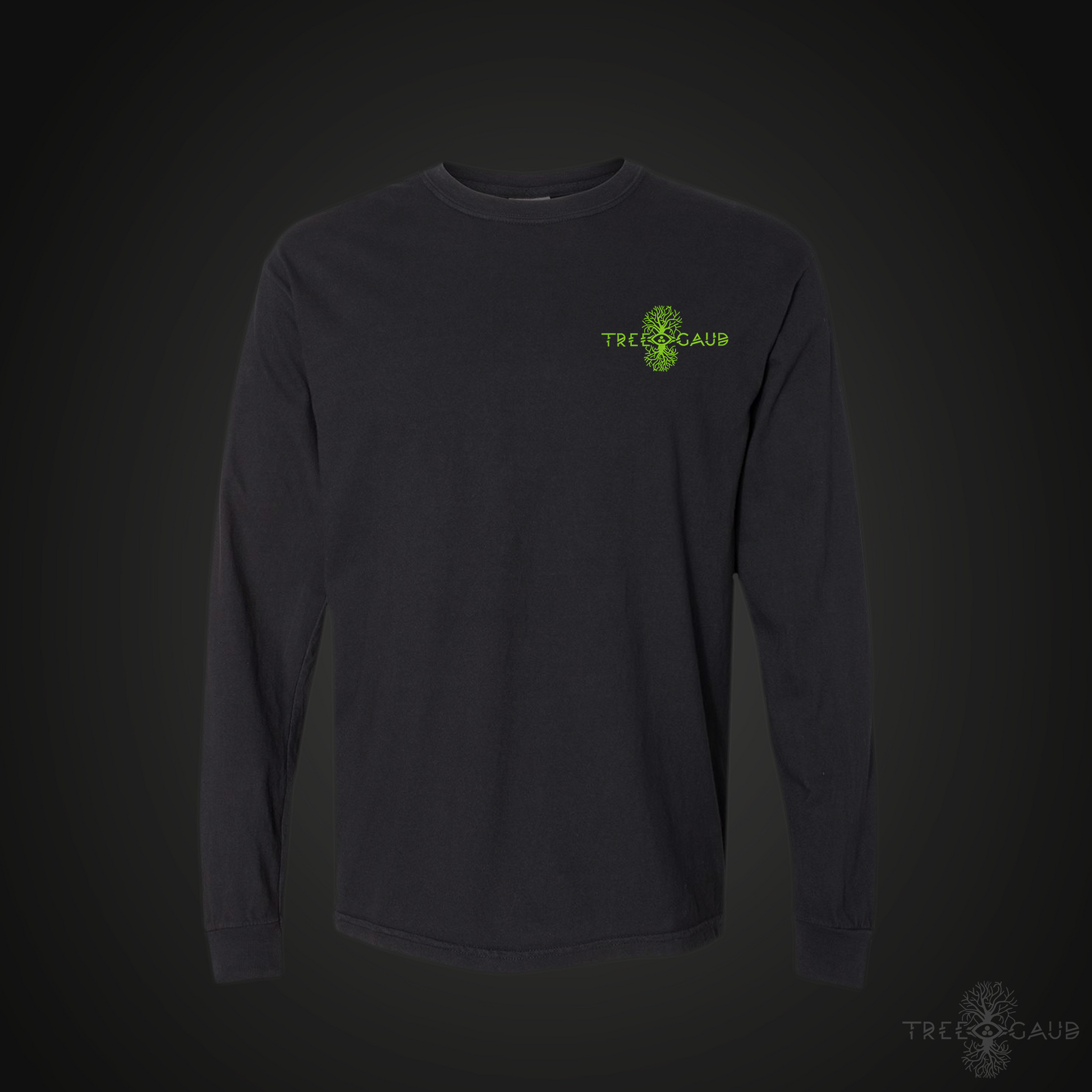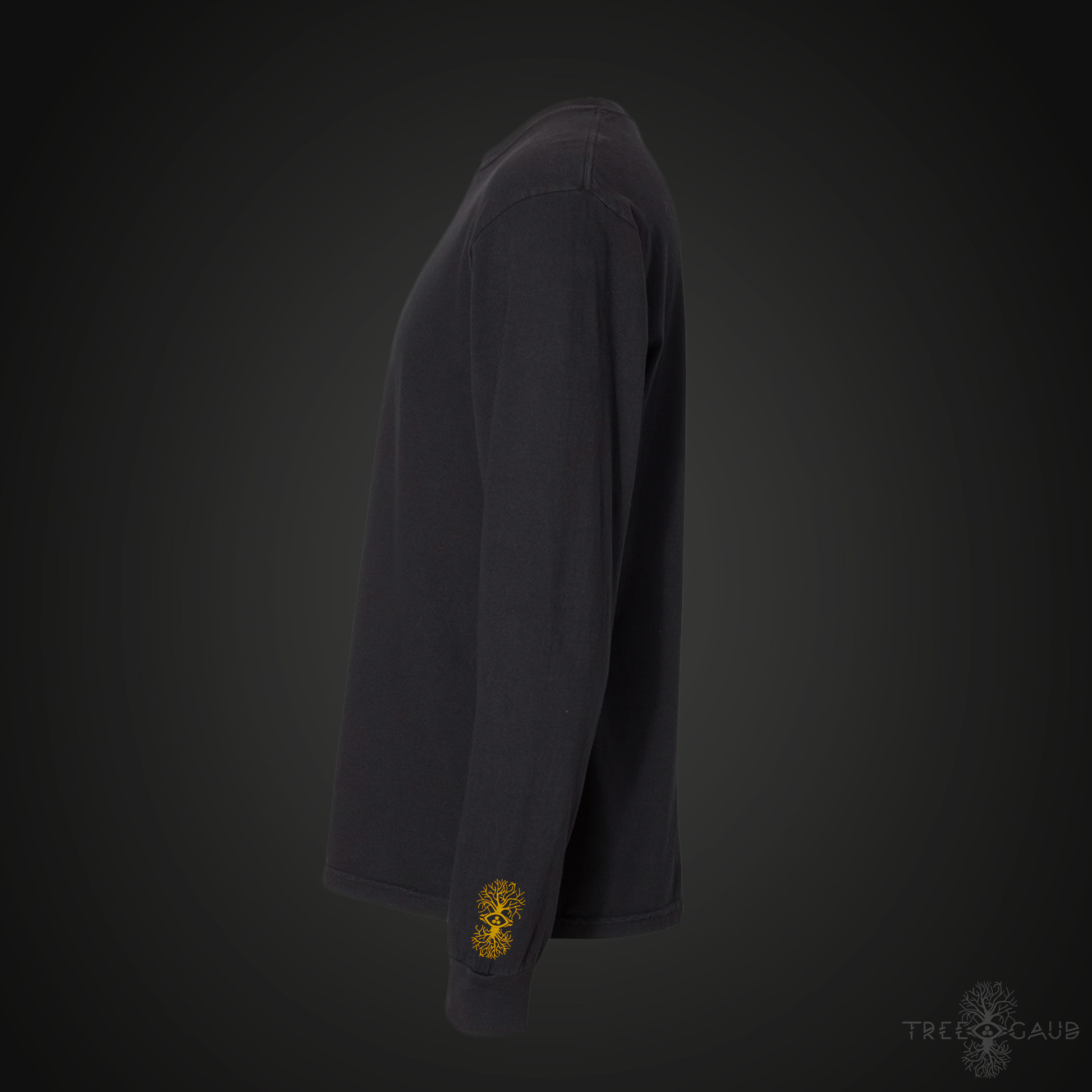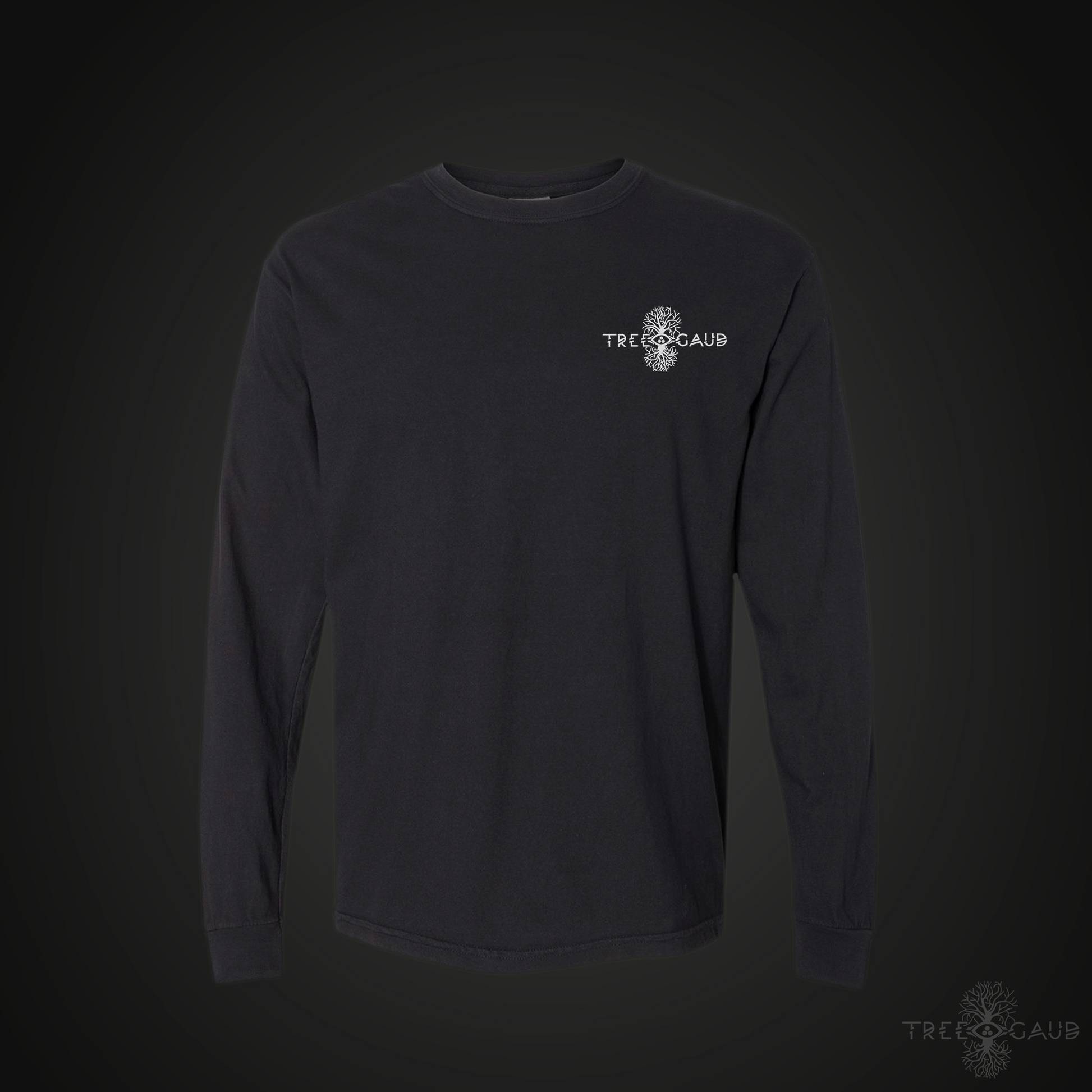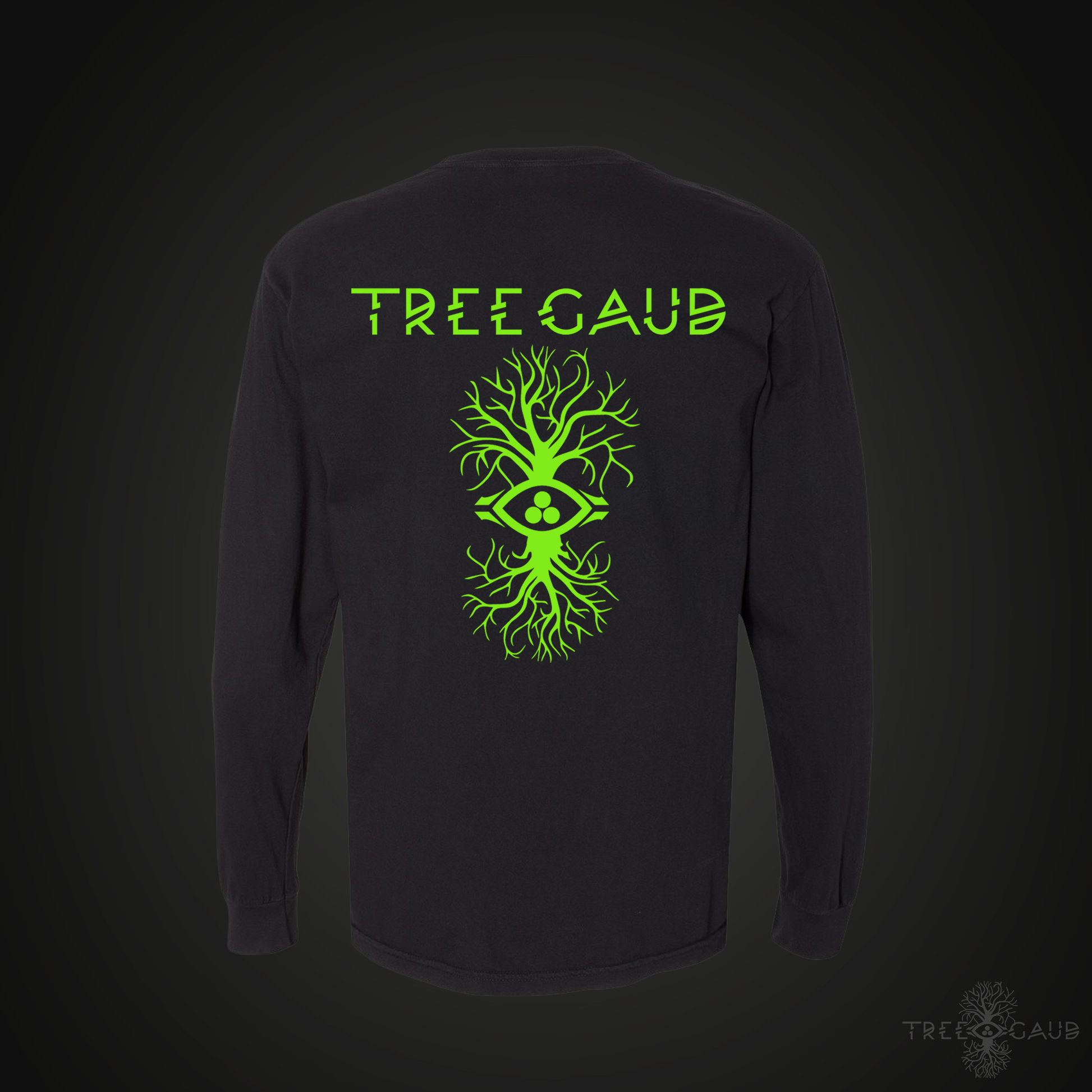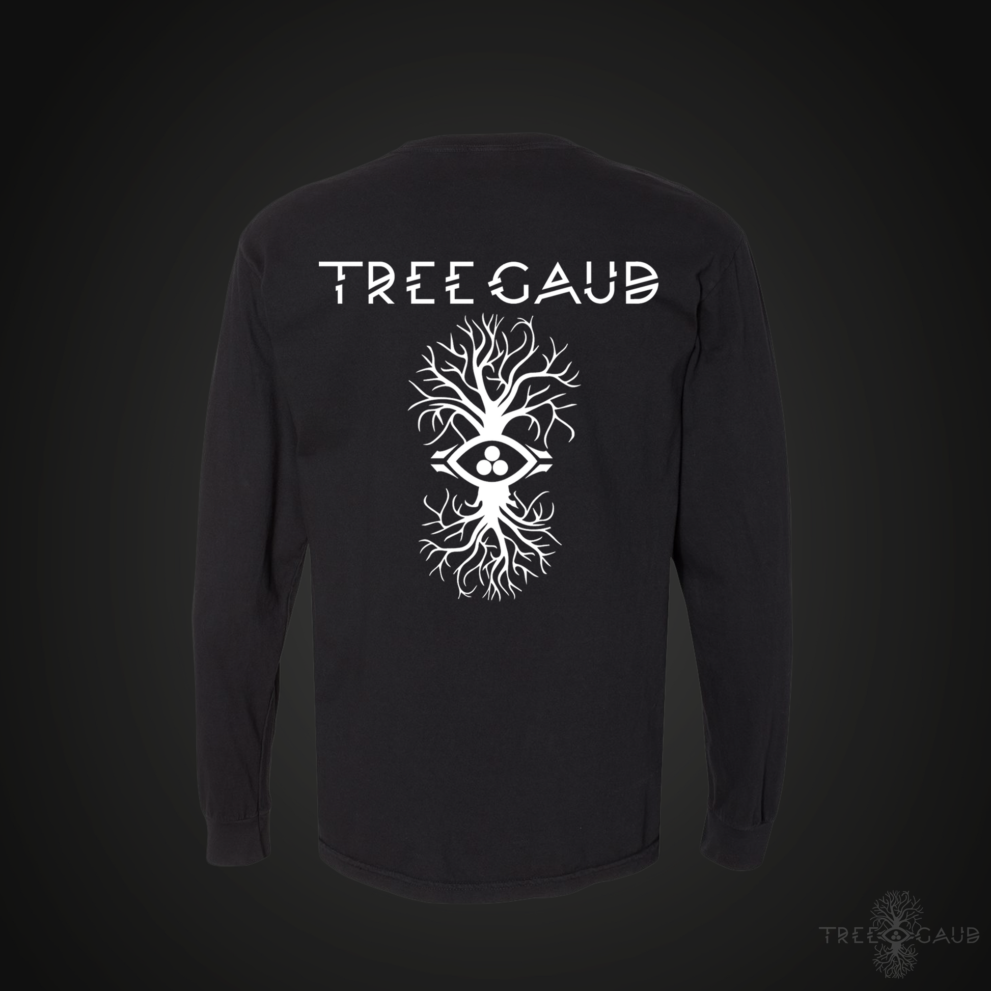 Go all out with Tree Gaud's Deluxe Long Sleeve T-Shirt features a 14 inch Direct to Film printed design on the back, a 4.5" 8.6k stitch embroidered logo on the front left chest , and a 1.5 inch, 5.7 k stitch embroidered Tree Gaud Symbol logo on the left wrist cusp!